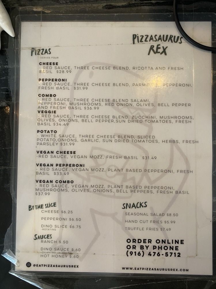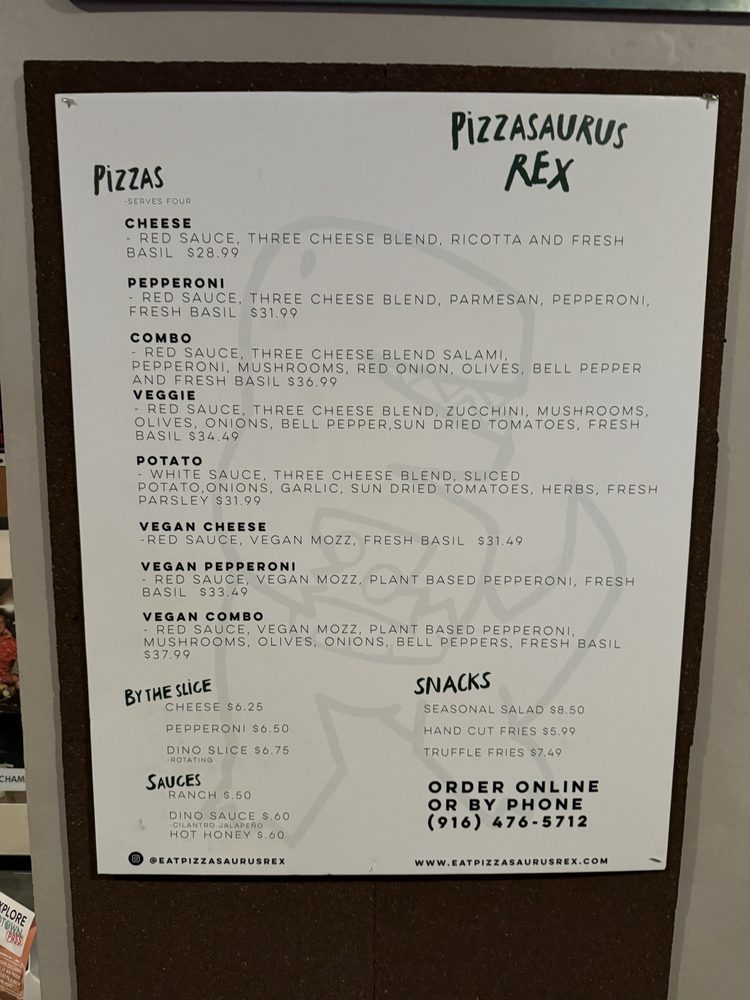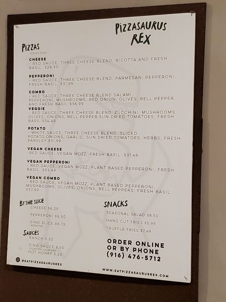 Pizzasaurus Rex, located in Sacramento, CA, is a pizza haven offering a diverse menu, including vegan and vegetarian options. Customers rave about the flavorful toppings, crispy crust, and cheesy goodness of their square slices. The ambiance is described as laid back and cozy, with options for indoor and outdoor seating. The attentive staff ensures a pleasant dining experience with quick service and a welcoming atmosphere. Reviewers recommend the pepperoni and potato pizzas, along with the truffle fries. The menu also includes happy hour specials and beer and wine options. With excellent customer service and delicious, quality pizzas, Pizzasaurus Rex is a must-visit for pizza enthusiasts in the area.